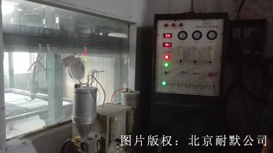 圖(1)等離子噴涂陶瓷設(shè)備正在噴涂中